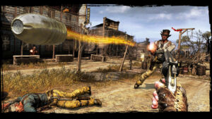 La bande-son tisse la toile sonore du jeu : riffs de guitare, percussions sèches, accents poussiéreux accompagnent la progression, renforçant l’immersion et la fièvre de l’action. Les musiques soulignent chaque fusillade, chaque duel, chaque fuite, prolongeant la sensation d’appartenir à un western hallucinatoire où chaque balle raconte une histoire.