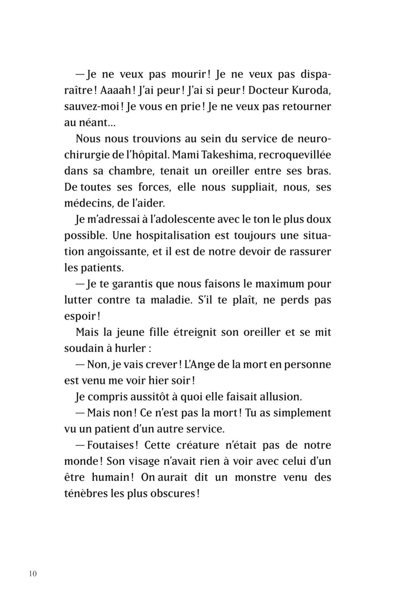 La vraie limite du livre, elle est là. Junji Ito est un auteur dont la peur passe beaucoup par le corps, les transformations ; qui s’ouvre, se répète, devient presque un architecte d’un monde en perdition. En prose, cette horreur corporelle perd une partie de son impact. Elle peut être décrite, parfois bien même, mais elle ne s’impose pas avec la même brutalité.