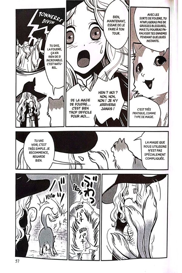 Pendant ce temps-là, la maman chat enseigne tout ce qu’elle sait à la jeune humaine qui l’a invoquée. À force de chasser des escarboucles, elle devient très puissante, une deuxième queue pousse et elle finit par devenir la 7ème directrice de l’établissement de Magie.